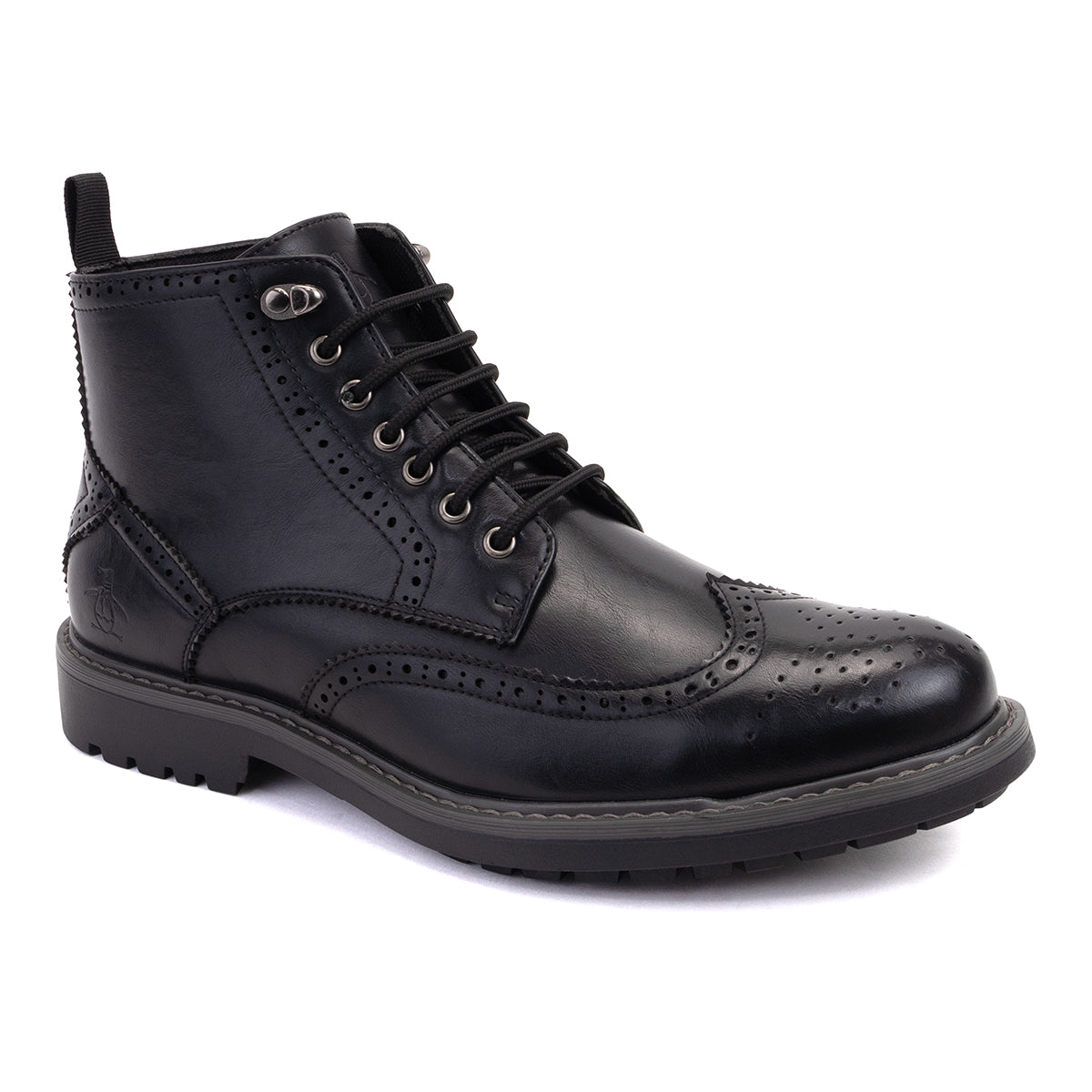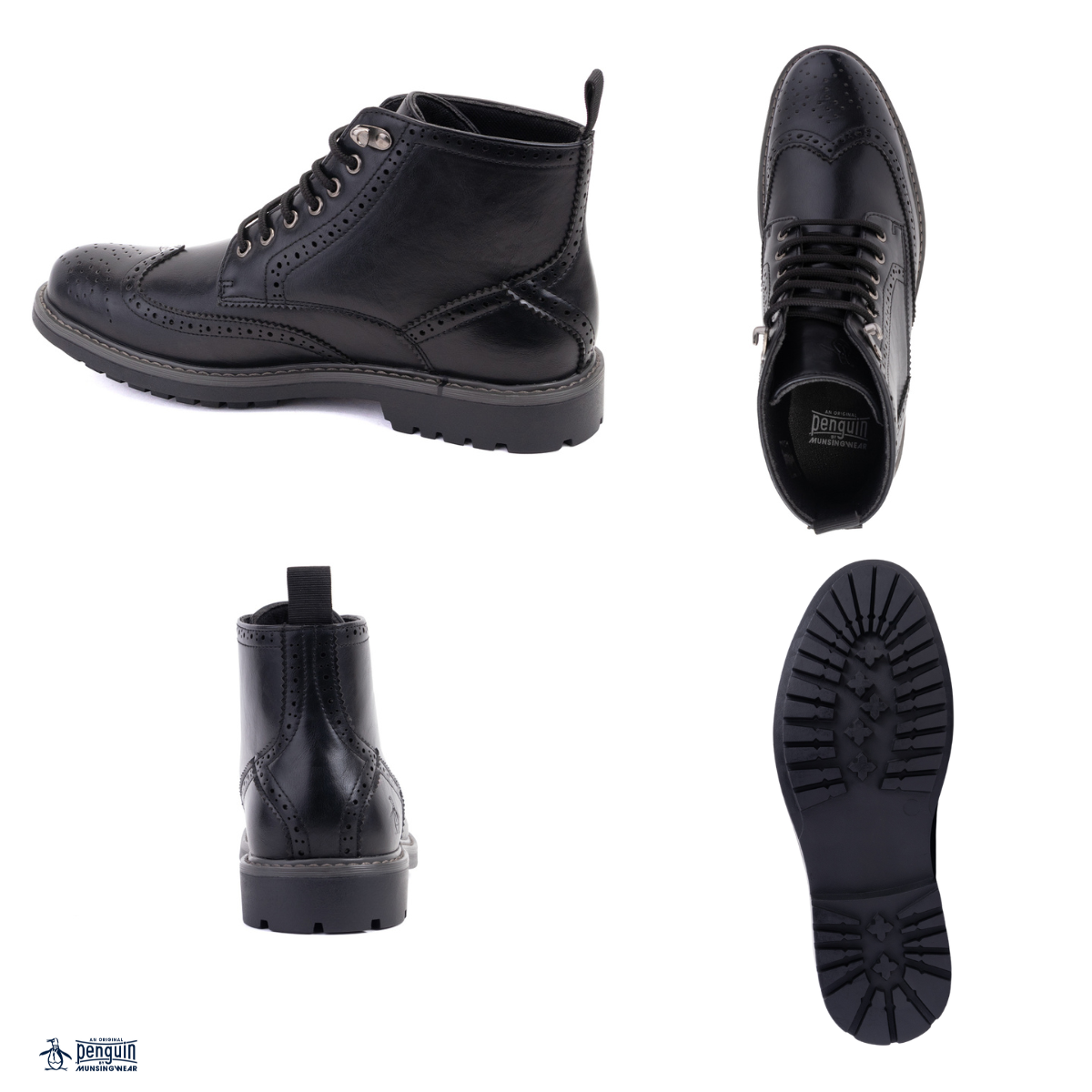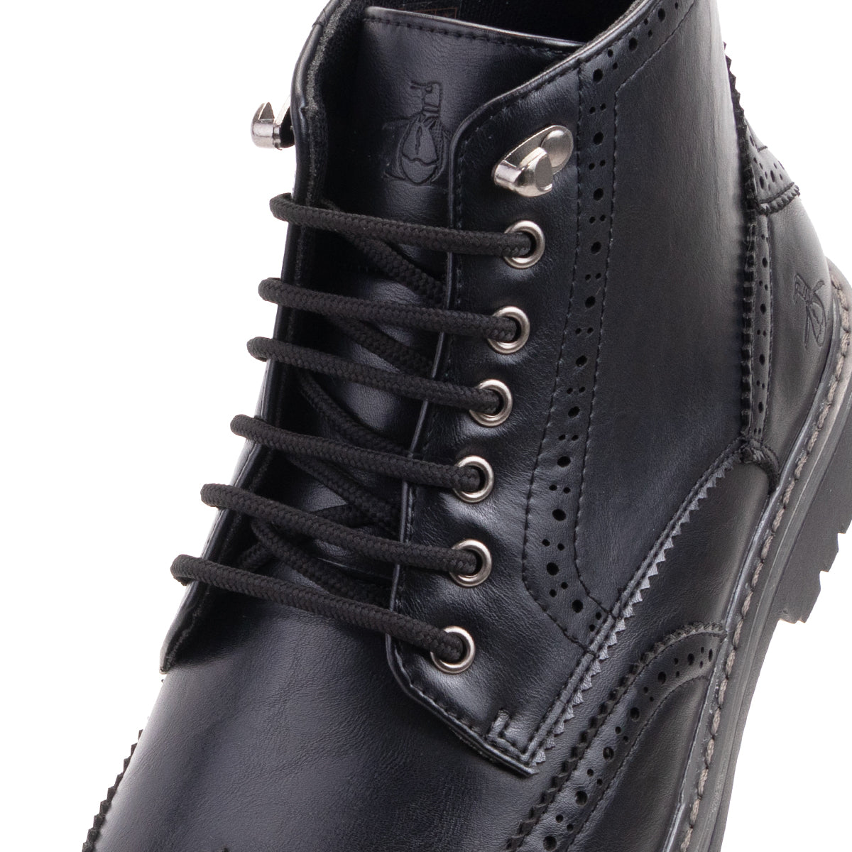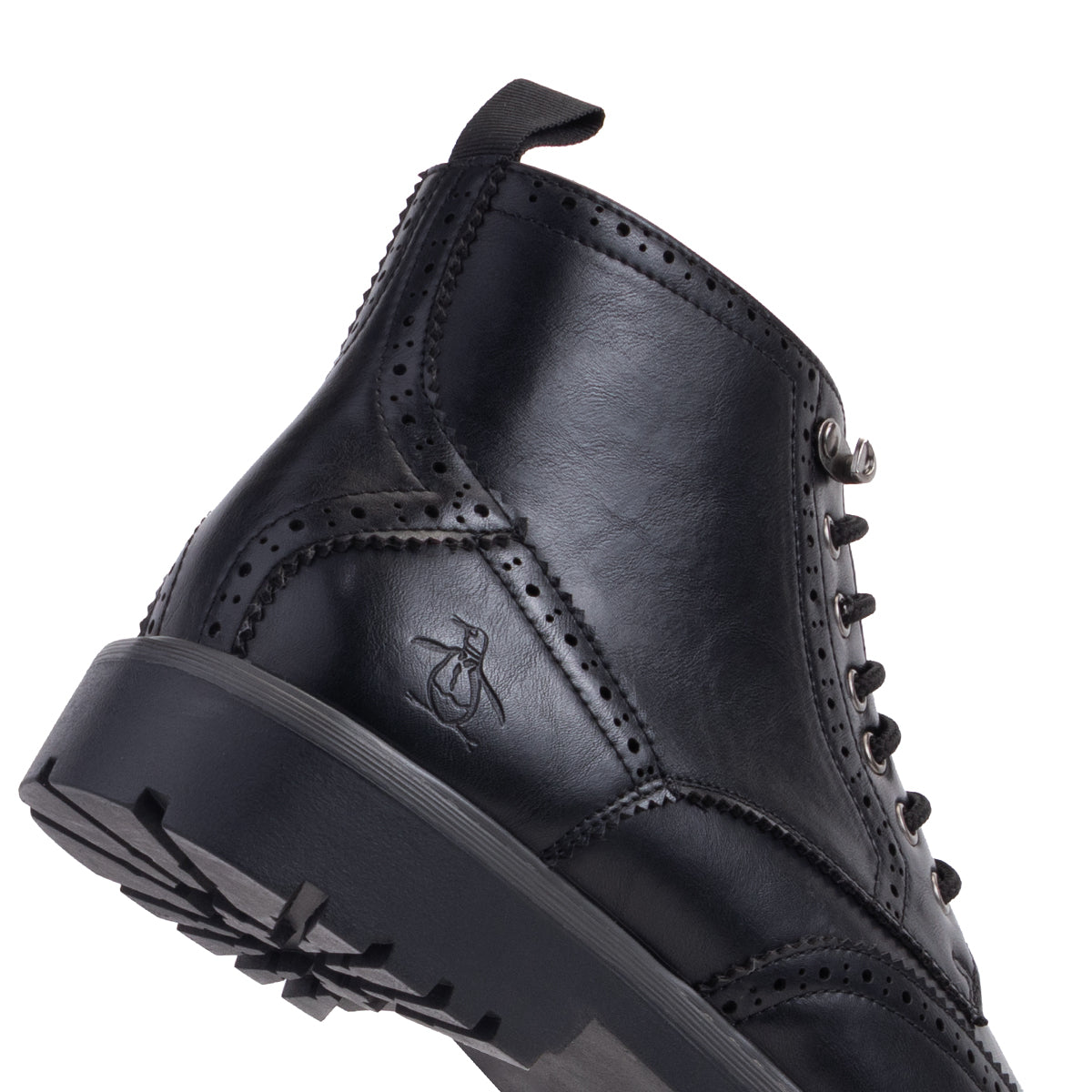 Las botas Edwin de Original Penguin, color negro, combinan fácilmente gracias a su diseño versátil. Confeccionadas con Action Leather y equipadas con Ultra Memory Foam, proporcionan comodidad, ventilación y seguridad. La suela TRP antideslizante premium asegura estabilidad.