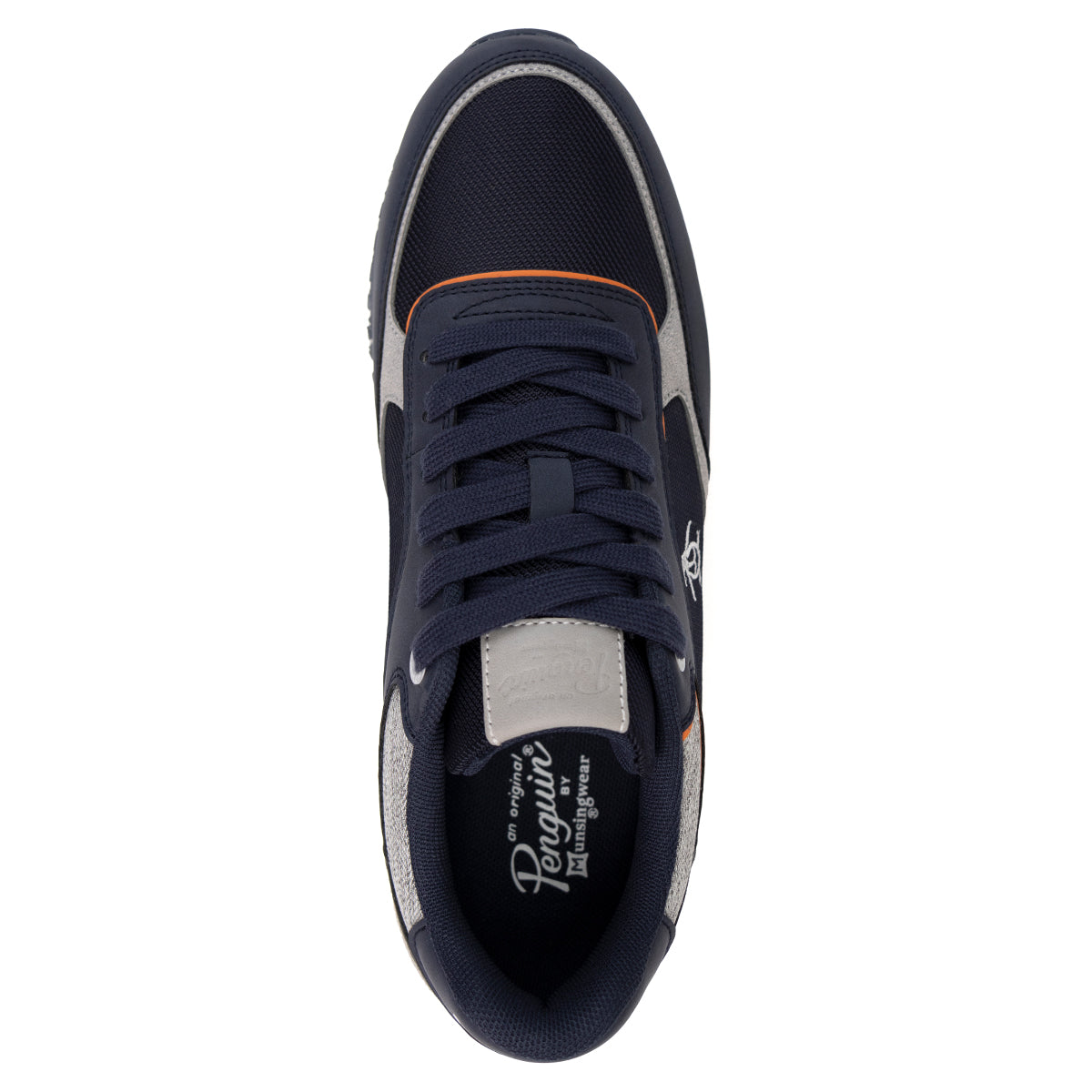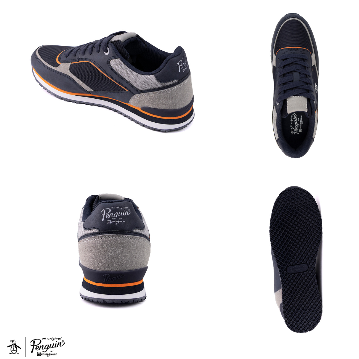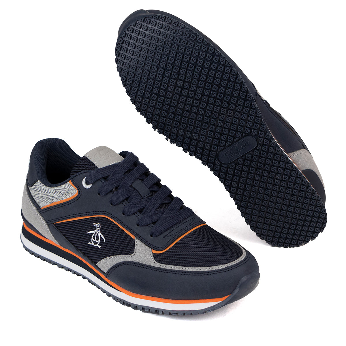 Los Tenis Style Bower de Original Penguin están marcados con el distintivo Pete de la marca. Fabricados con paneles de PU Leather, Mesh y Microsuede en azul marino, una suela Original Confort de EVA con TPR antideslizante, que volverá tus paseos más cómodos.