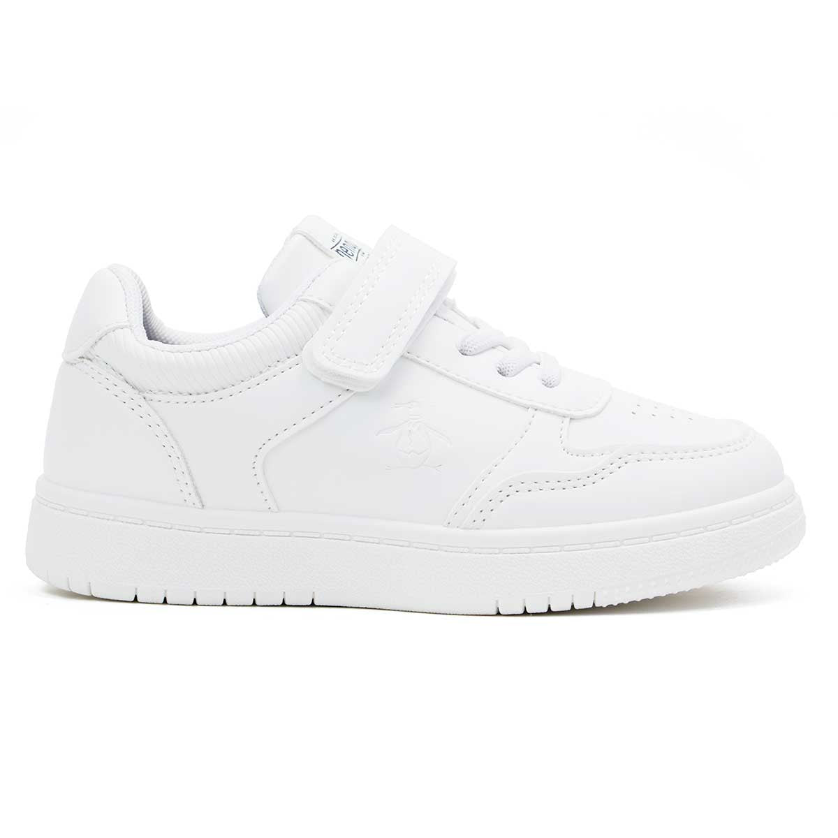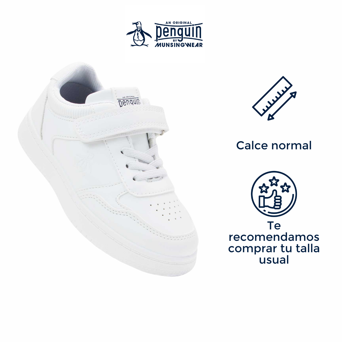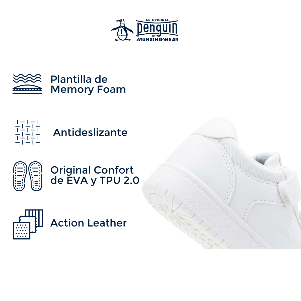 Prepara a tu pequeño para la aventura escolar con los Tenis Original Penguin Style Gavin Blanco Para Niños. Confeccionados en Action Leather, y equipados con plantilla Memory Foam para máximo confort. La suela Original Confort de EVA y TPU 2.0 asegura estabilidad y seguridad, mientras los cordones elásticos y cinta velcro ofrecen facilidad para ajustar. ¡Ideal para días activos y llenos de diversión!