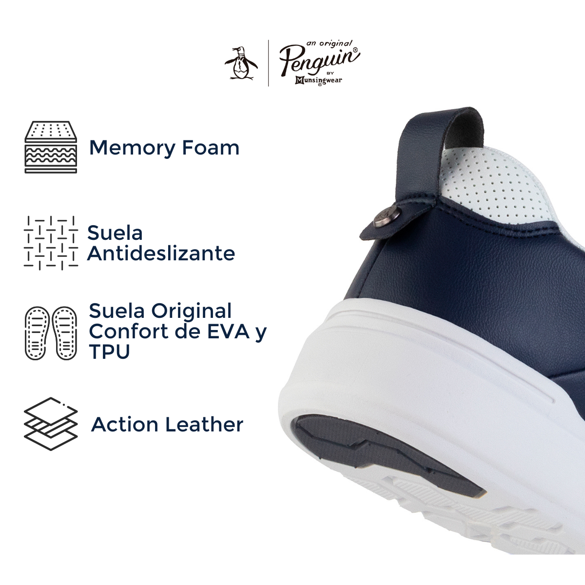 Descubre que los Tenis Style Rami de Original Penguin en color azul marino, lograran una combinación ideal con tu guardarropa. Fabricados de Action Leather con interiores de Pique, en una suela Original Confort de EVA con TPU, integrando el logo de la marca en un costado.