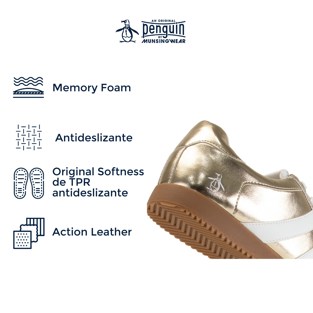 Dale un toque de brillo a tu día con los tenis Style Violet en dorado de Original Penguin. Su diseño combina el look moderno con materiales pensados para tu comodidad: exterior en Action Leather, plantilla Memory Foam y TPR Original Softness que ofrece ligereza y buena tracción. Perfectos para caminar con estilo, sin sacrificar confort. Ya sea para una salida casual o tu rutina diaria, estos tenis se adaptan a ti y a tu ritmo. ¡Atrévete a destacar con cada paso!